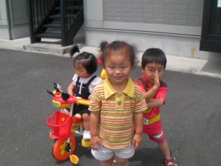 ホーム > 未分類 > ユウナちゃんと 2010/06/24 投稿者:のりこ ユウナちゃん、リナちゃんと一緒に遊びました。 保育園に行こうとして部屋を出たら、 珍しく外で遊んでいるユウナちゃんが居たのです。 そのまま2人で遊び始めたので保育園行きは中止。 途中から、妹のリナちゃんもお昼寝から目覚めて一緒に遊びました。 それにしても・・・ユウナちゃんの方がかなりでっかいよな~ 7ヶ月位違うのに!! 頑張れ元哉! もっと食べよう!! 未分類