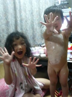 結局、3人の体に塗りつけたけど、まだまだ多い感じでみんなヌルヌルしてました。