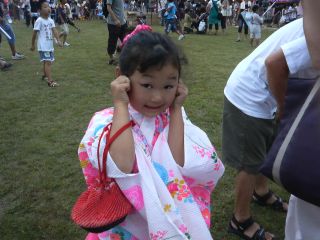 バーバに浴衣を着せてもらって、遥は嬉しそうにしていました。