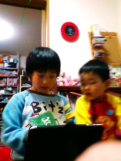 元哉とipadで遊んでいるところ。