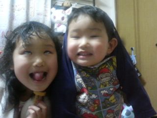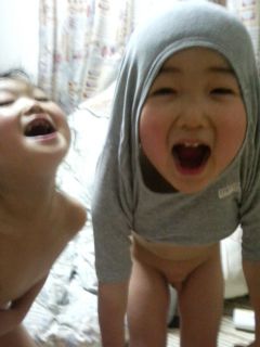ホーム > 未分類 > へんな格好・・・ 2010/12/27 投稿者:のりこ お風呂上がりにシャツを着せる時、 ふざけて途中までかぶせてみたら、気に入ってしまった様子。 とても怪しいです。 さらにパジャマでもやってました。 髪が見えている分、シャツの時よりマシか!? そういえば・・・誰かさんもこんな格好してましたね~~ さがすのに時間かかっちゃった!! 2006年3月の写真でした。 今の元哉より、ちょっと小さい遥。 未分類