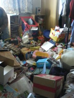 パソコンは床に落ちた後、さらに上からプリンターが落ちて下敷きに。