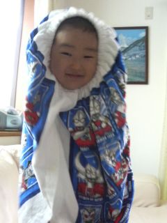 プール上がりのもっちゃん。 ↓↓ カオナシみたい。