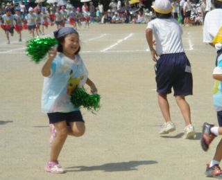 遥のクラス4組は緑がチームカラーなので、緑のポンポンを持って踊りました。