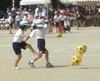 [栄光へのキック]:2人組でボールを蹴る。クラス対抗。
