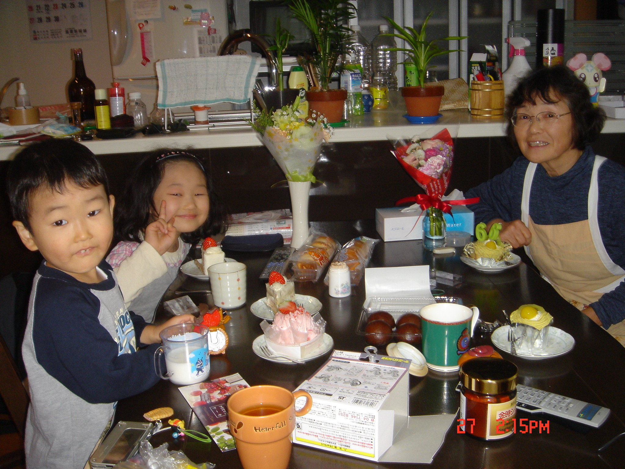 のりこ達がケーキをもってお祝いにきてくれました。