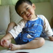 雪が積もったので、遥と元哉は一緒に雪だるまづくりをしていました。