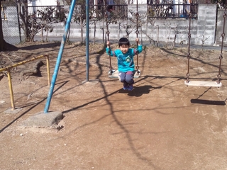 行く途中、公園のブランコで遊んだんだけど・・・。