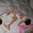 遊び疲れてお風呂に入る前に眠りに落ちてしまったもっちゃん。