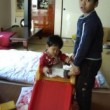 遥と元哉はまた傘を引っ張りだして遊んでいました。