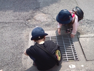 いつもこんなふうに、石をドブの中に落としたりして遊んでしまいます。