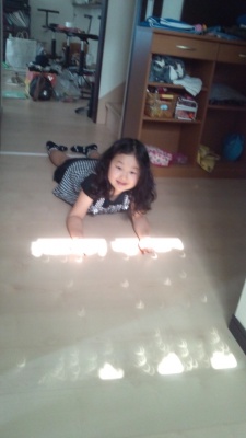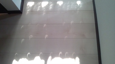 廊下の東側の窓から入る日差しが見事に三日月模様になっているのを発見!!