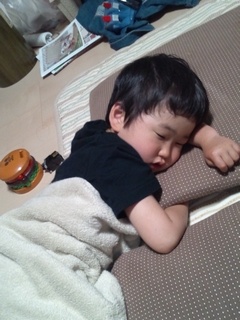 遊び疲れたもっちゃんは、お風呂に入る前にグッスリ・・・。