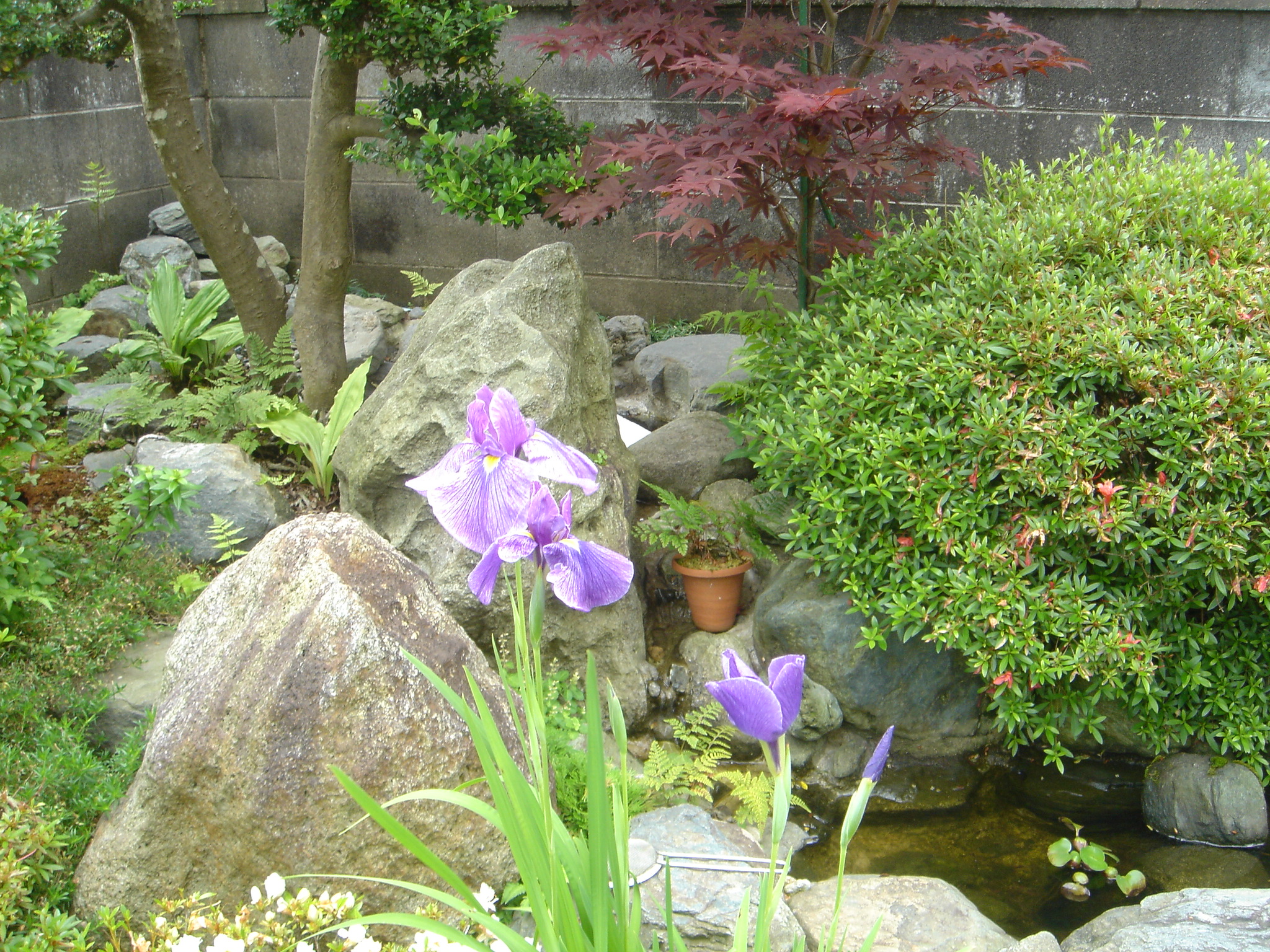 ジージ宅の池の周りにアヤメが咲き始めました。