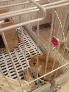 たぶん、何回も頭でケージの蓋を押して、ずらしていったのでしょう。