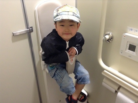 元哉はウンチの時、ズボンも全部脱がないとダメな人なので、赤ちゃん用の椅子に無理に座って見ました。
