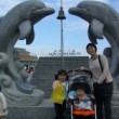 しかも、体育館の中では待っていられないので、3人で外で晩御飯です。